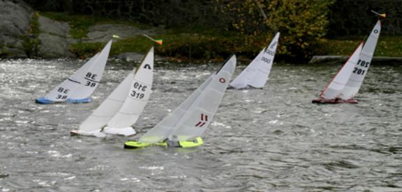 In order to race 37 boats of different classes, they were divided into an Over-40 inch and an Under-40 inch fleets. In the under-40 inch fleet the 15 CR 914s started first. When they had cleared the start line the second 6 boat fleet started (5 US One-Meters, one Soling One-Meter and one Seawind). This year all 15 of the Over-40 boats started at the same time. There were 12 Vintage Marbleheads, two modern Marbleheads and one Star 45.